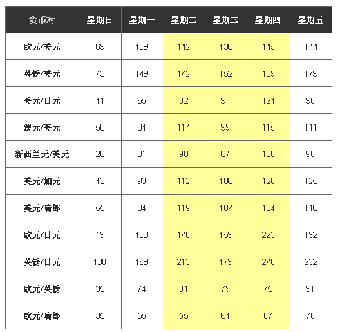 如表所示,周三很可能是一周中最好的平均交易点,因为这是大部分动作发生的最佳时候。