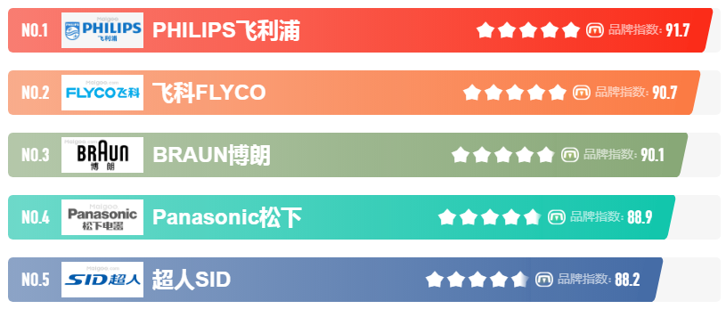 1、飞利浦。飞利浦牌的剃须刀总是有质量保证,因此口碑不错,性价比较高,不容易产生噪音,产品寿命较长,如果您购买的是正品,那么品质一定是较高的。