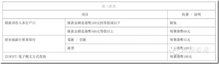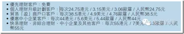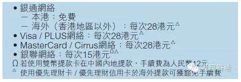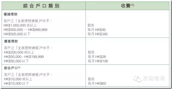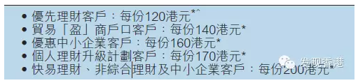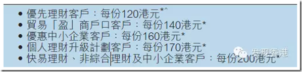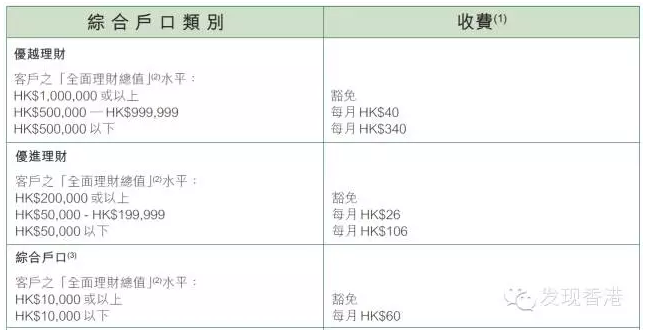 卓越理财:平均每日最低结余100万港币,不足者收取380港币/月。