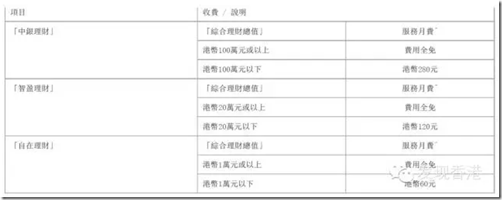 中银理财:平均每日最低结余100万港币,不足者按季度收取280港币