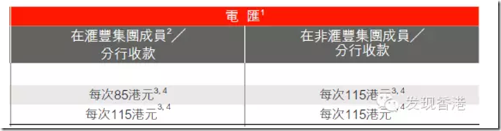 除透过汇丰集团成员汇至中国内地每次收费85港币外,其他汇至其他地区或者透过非汇丰集团成员均收费115港币。