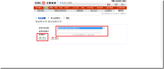 操作页面会显示国信香港及证券资金账户、结算账户信息,请点击“执行”。