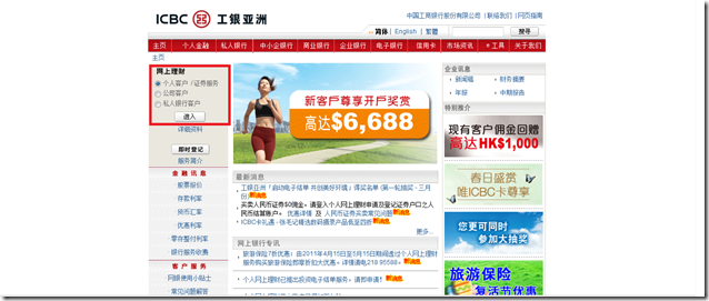 登录工银亚洲网上银行http://www.icbcasia.com,选择“个人客户(证券服务)”并点击“进入”