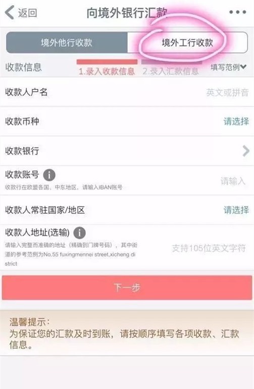 本文以国内工行汇款至工银亚洲为例,给各位客户作参考: