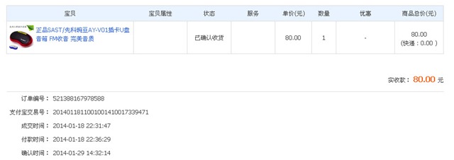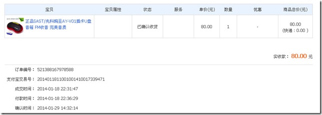 最近在上面开店铺卖出一件先科豌豆音箱,附上收入图。