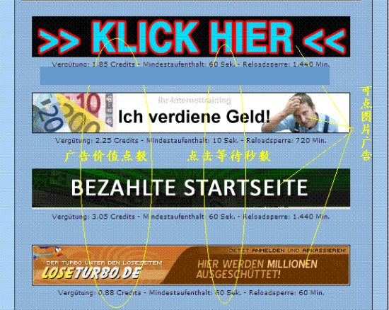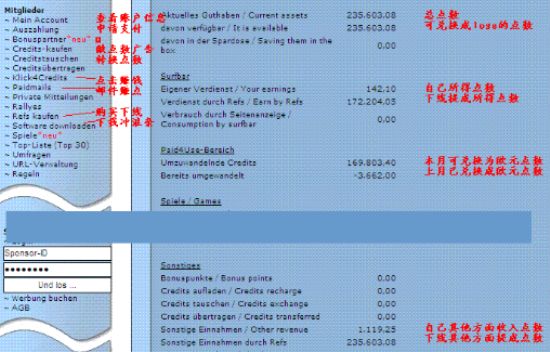 点最左边的 Mitglieder栏目下的 Klick4Credits 即可操作点击赚点