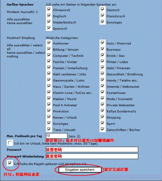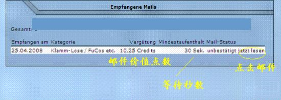 点最左边的 Mitglieder栏目下的 Paidmails 即可操作邮件赚点。