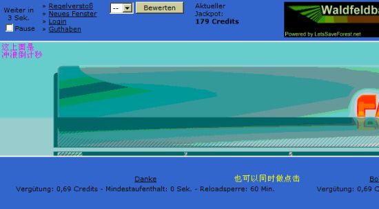 温馨提示1:冲浪到一段时间需要重新开始,就是出现 Session Starten 按纽,有时间隔一小时,有时间隔四小时以上。一般冲了1到2个小时会停下来,你只要过段时间去看看就可以了,点一下按纽它就会继续冲。