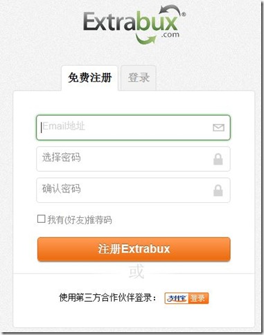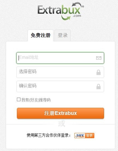 用户可以通过上图中的1和2所示的按钮来免费注册一个Extrabux账户,按钮3可直接进入Extrabux官方微博,了解更多Extrabux的信息。