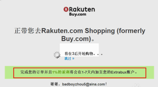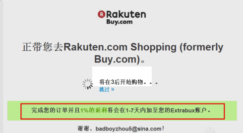 8、在商家页面完成产品支付后,extrabux的官网会提示有1%返利,敬请留意自己的帐号,及时把握到账情况