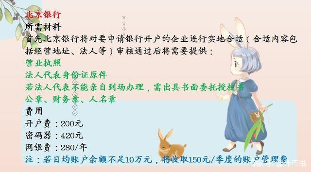 各银行对公账户开户费用及注意事项
