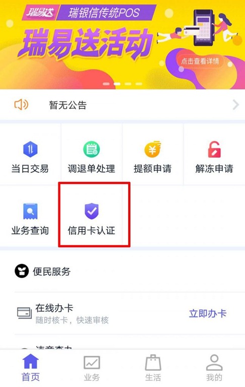 2、由于实时到帐额度是2000,需下载APP:瑞易生活商户版,激活账号,绑定商户,认证信用卡提高实时到帐额度,具体方法参考上面信用卡认证步骤: (交易小票商户名称下边就是商户编号)