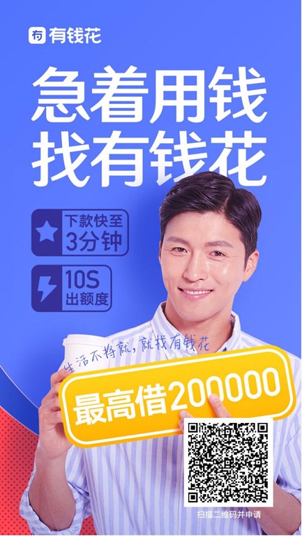 立即扫码,找有钱花,三分钟夏款,最高20万!