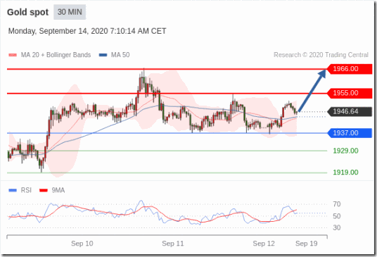 在 1937.00 之上,看涨,目标价位为 1955.00 ,然后为 1966.00 。