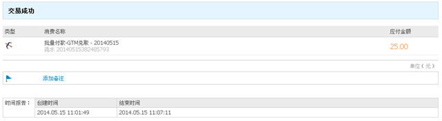 2014年5月16日收到全球决策大本营GTM调查收款25元