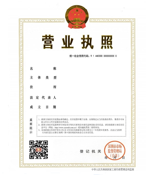 为与全国保持一致,将目前在深圳实行的企业法人营业执照、非法人营业执照、分支机构营业执照和个体工商户营业执照四种营业执照版式,合并为单一营业执照版式,并由以前的横版执照改变为竖版执照。