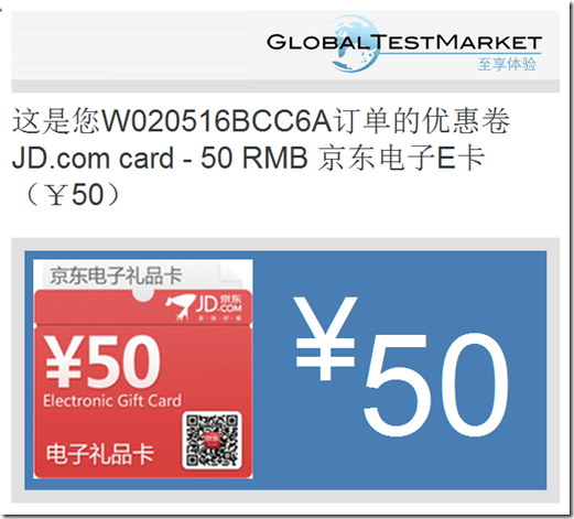 2016年2月10日收到GTM国外调查京东电子E卡(¥50)