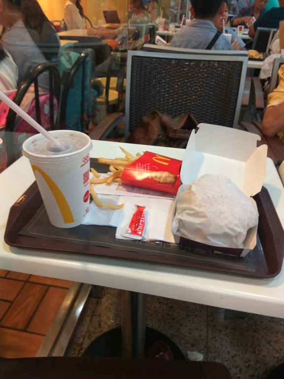 香港麦当劳 中餐就吃这个解决 在香港可以使用八达通刷卡购物吃饭 支付宝微信在香港不流行 扫码