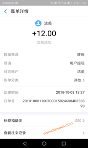 2018年10月8日收到手机赚钱洁美平台收款12元,大平台值得信赖,赶紧抓住机会赚大钱,限时国庆节日活动只要8.8元购买代理会员!
