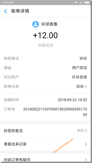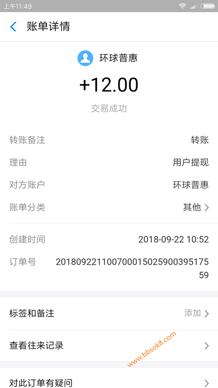 2018年9月22日收到手机赚钱环球平台收款12元,大平台值得信赖!