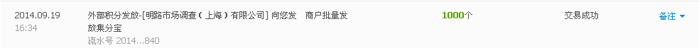9月19日收到明路市场调查支付宝收款1000集分宝 相当于10元钱