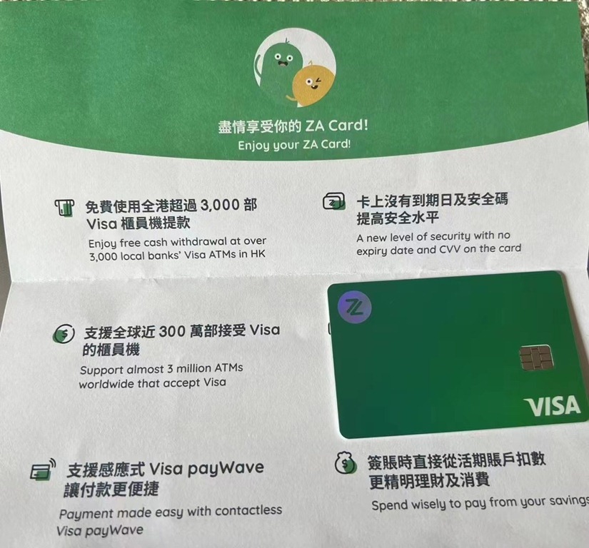 ZA BANK支持内地身份开户,0存款门款,线上操作、无需管理费、只要人在香港就可以开户