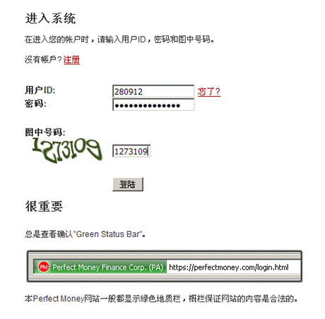 第六步:回到Perfect Money官方網站,進行登錄,如圖;