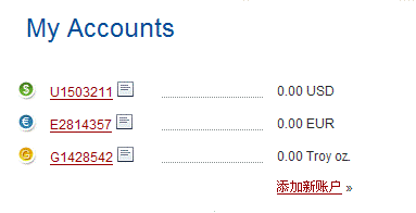 網銀perfectmoney給每個用戶分別開設美元(USD)、歐元(Eur)、黃金(gold)三個存款賬號,帳戶資金可以在三個帳戶之間隨時自由轉換,有點國際外匯知識的朋友應該明白