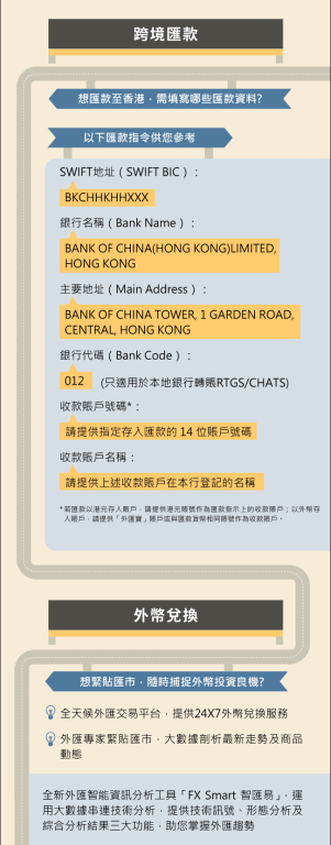 中國銀行香港BOCHK跨境匯款模板參考