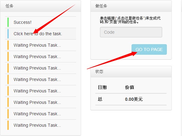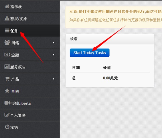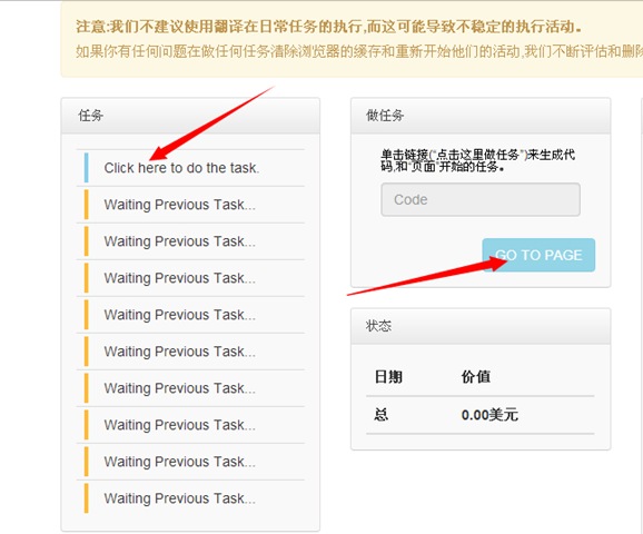 全部流程完成之後,重新登陸網站後台,完成點擊瀏覽廣告任務,請看以下操作示意圖(隨時點擊網頁翻譯)