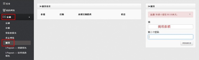 1 向公司提現:可用錢包(平衡)需要夠300美金,公司不收手續費,銀行收手續費。