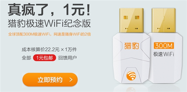 獵豹極速WiFi紀念版5月21日正式開售,前10000件僅售1元,還包郵。