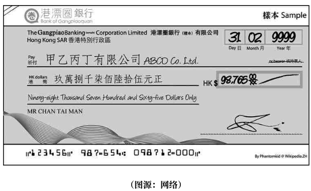 這與內地支票的情況不同,內地支票一旦填寫錯誤就無法修改,而且不能摺疊,必須小心保存以免損壞。