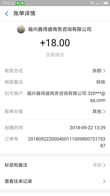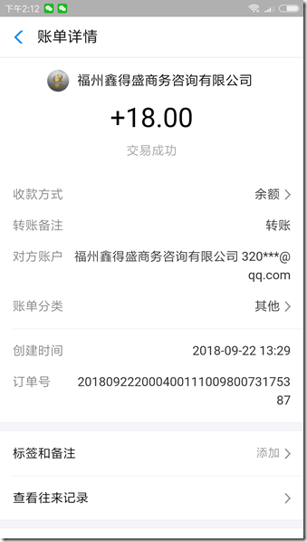 2018年9月22日手機賺錢鑫e代平台收款18元