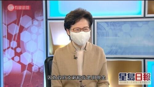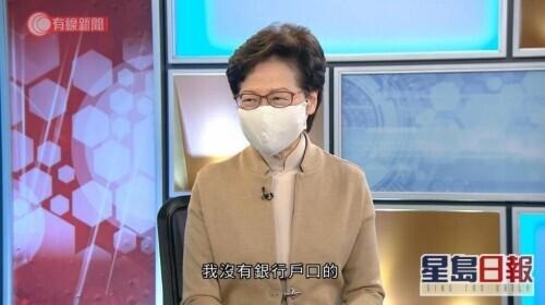 香港「星島網」、《頭條日報》報道,林鄭月娥接受香港有線電視英文專訪時,被問到美國因香港國安法對她實施制裁後生活有沒有不便,她透露她作為香港的首長,沒有銀行能提供服務,她每日用現金買所有的東西。