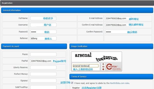 1.點擊上方northclicks官方地址,進入Northclick主站,再點擊上方的註冊按鈕「Register」註冊下: