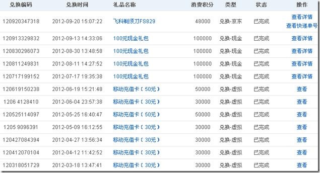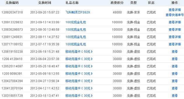 下面是我換的一些禮品,有沖值類,有現金禮包,也有實物禮包。