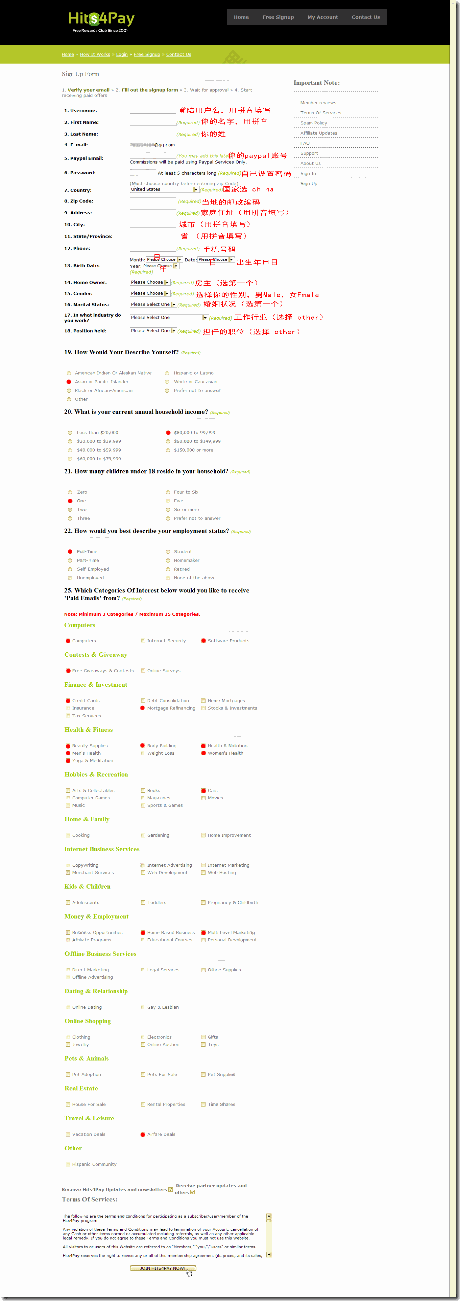 注意填写:注册信息,hitspay有严格的审核机制,所有信息一定要填写真实。另外,千万不要注册多个帐号!
