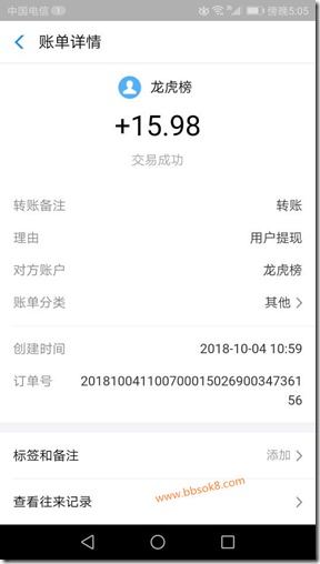 新平台【龙虎榜】专治黑户平台2018年10月4日手机赚钱【龙虎榜】平台收款15.98元