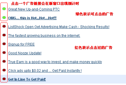 返回廣告主頁面,繼續點擊下一個廣告。點擊過的廣告綠點會變成紅,表示已經點擊過了 。